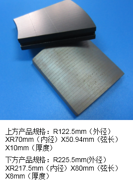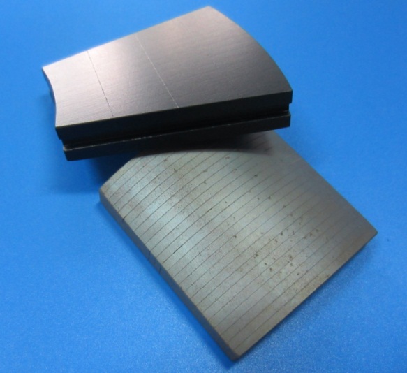 叠片磁钢组件涡流小,同时性能和整体磁钢组件一样甚至优越,电机尤为电动汽车上所使用的绝大多数转子磁钢均可以进行这样的设计,所以绝缘拼接磁钢组件的应用也越来越多