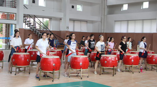 在明发国际网站体育馆的鼓队训练室,夏日的酷热无法阻挡大家积极排练的热情,在没有空调只有排风扇的排练环境下积极训练。浙江歌舞团的老师指导大家从肢体动作到面部表情,从音乐鼓点到团队配合,力求鼓队每一个细节都完美呈现,大家不断地熟悉旋律和动作,不断提升彼此间的默契程度,争分夺秒地一遍遍练习。虽然每次的训练都长达半天甚至一天时间,但没有人想要放弃,员工们这种苦中作乐的精神也感染了周围同事。