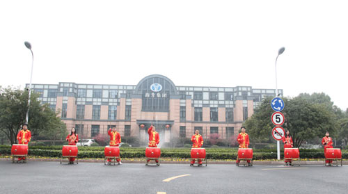新年上班首日,明发国际网站二园总部大楼门口,8名员工一字排开,挥舞手中的鼓棒,正卖力地敲打红鼓。每年,公司都通过这样一种传统、环保而极其喜庆的方式,迎接员工前来上班。当天,在公司总部还举行了一个简短的仪式,由集团董事局副主席竺晓东向全体员工拜年,送上新春的问候。