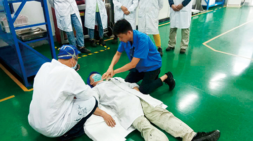 6月16日,电镀喷涂车间组织了有毒有害气体泄漏伤害现场处置应急演练。演练假设员工在喷涂作业时吸入大量有毒有害气体后昏迷,由员工、班长、组长、救护人员等展开紧急抢救。演练旨在高效、有序地处理有毒有害气体泄漏伤害事故,提高员工的现场处置能力和自救能力,并能熟练掌握可燃气体报警仪和防毒面具的使用及佩戴。