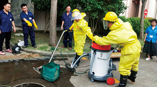 6月10日下午,在公司三园宿舍举行的疏散逃生演习,共有164名住宿人员参与。本次演习以发警铃(声光报警器)响起为信号,在紧急疏散引导组的引导下,住宿人员按预定逃生路线快速有序地撤离,并到达最近的安全地点集合。整个逃生过程仅用时56秒。