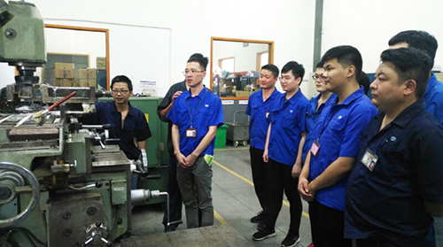 本次培训主要由制造部模具制作组经验丰富的3位老师傅做导师,共有生产计划科、质量科、自动成型科三个部门的8位管理员工参加培训。培训内容为平面磨床、钻床、车床、铣床、快走丝、中走丝六大设备的实战操作。