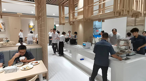 给员工就餐多一种选择,让大家吃好!7月25日,位于明发国际网站三园的yuAn味自助餐厅开启试营业。至今一月有余,餐厅良好的就餐环境及物美价廉的自助式菜品,广受员工好评。