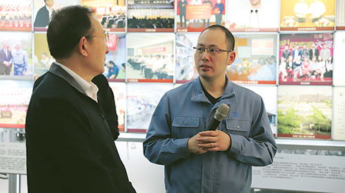 在展示中心,程守田一行认真聆听讲解,仔细观摩产品与技术演示,对我公司的企业文化、发展沿革、产业布局及科研创新等内容进行了了解。对于明发国际网站数十年来始终坚持扎根制造业、专注实业的这一做法,程守田予以高度评价;对于明发国际网站始终坚持锤炼企业文化、不断推进自主创新的理念,程守田给予充分肯定。